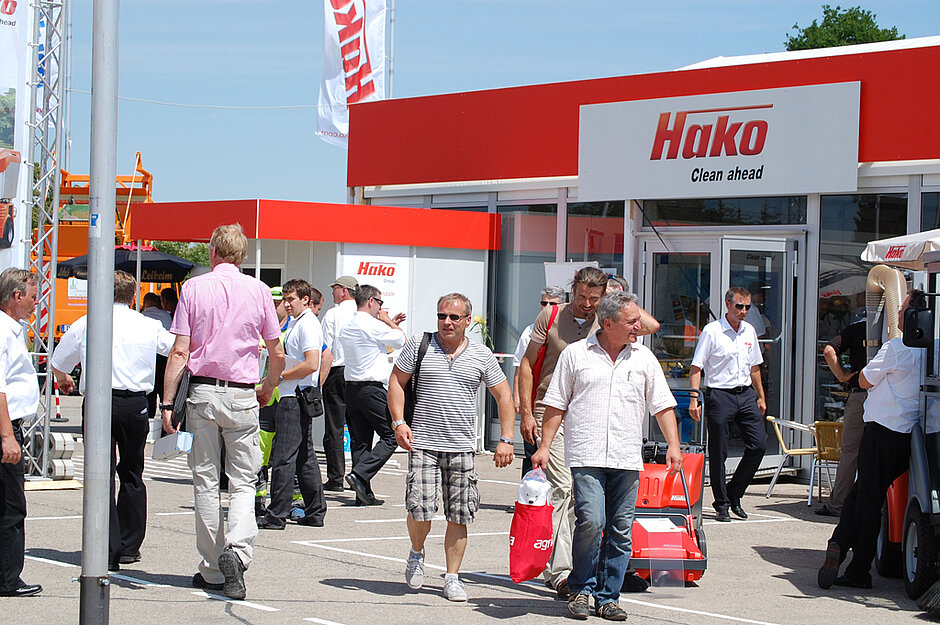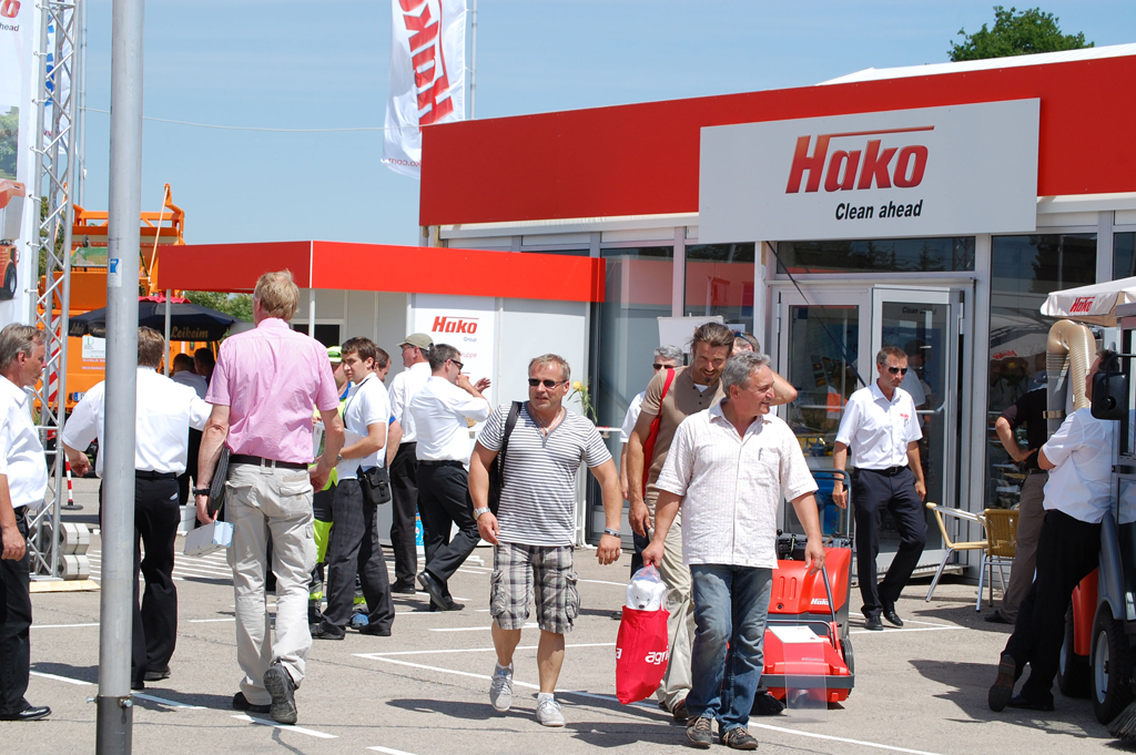 Wer auf diesen Adrenalin-Kick verzichten und sich lieber in die Rolle des genießenden Beobachters schlüpfen wollte, nahm vor dem Hako-Kehrparcours Platz. Aus nächster Nähe konnte man erleben, wie ernst die Hako-Citymaster das Thema saubere Straßen und Wege nehmen. Der Citymaster 1200 überwand spielend die Randsteine im Parcours, der Citymaster 2000 3-Besen präsentierte das gleichzeitige Kehren in der zweiten Ebene und bewies, dass auch Blumenkübel für die 3-Besen-Technologie keine besondere Herausforderung darstellen.