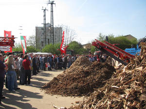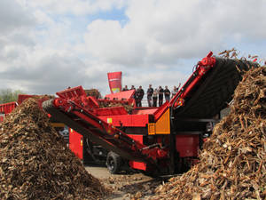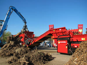 Auch die HAMMEL Recyclingtechnik GmbH nutzte diese Möglichkeit und präsentierte Ihre neueste Technik. Bei täglichen Vorführungen wurde dem Messepublikum LIVE gezeigt wie voluminöse Wurzelstöcke effektiv zerkleinert werden. Die riesigen Baumwurzeln wurden mit Hilfe eines Vorbrechers VB 850 DK vorzerkleinert und anschließend mit dem HAMMEL Holzsieb HSS 1.500 D in 3 unterschiedliche Fraktionen (0-10 mm, 10-60 mm, 60-200 mm) separiert.