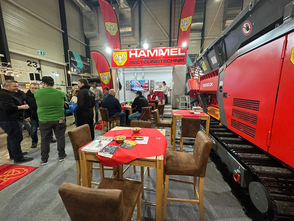 Darüber hinaus konnten die Messebesucher den HAMMEL-Zerkleinerer, Typ VB 650 DK, auf dem Firmenstand unter die Lupe nehmen. Dieser kettenmobile Vorbrecher ist mit einem leistungsstarken Cummins-B6.7-Dieselmotor der neuesten Abgasstufe V mit circa 280 PS ausgestattet.