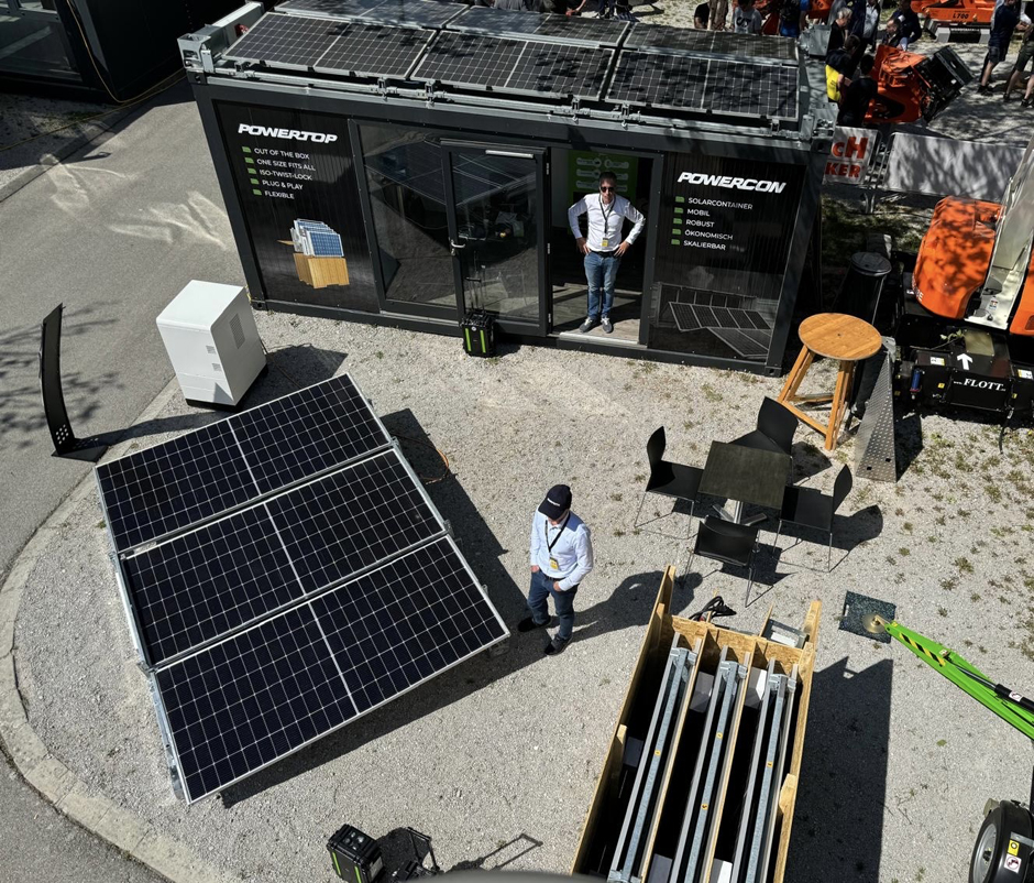 Zusätzlich wurde mit der Produktneuheit POWERSLIDE, einer mobilen und rasch aufsetzbaren Solar-Anlage für 10-Fuß-Container, ebenso saubere Energie in den POWERCUBE eingespeist und die Solarstrom-Produktion erhöht.