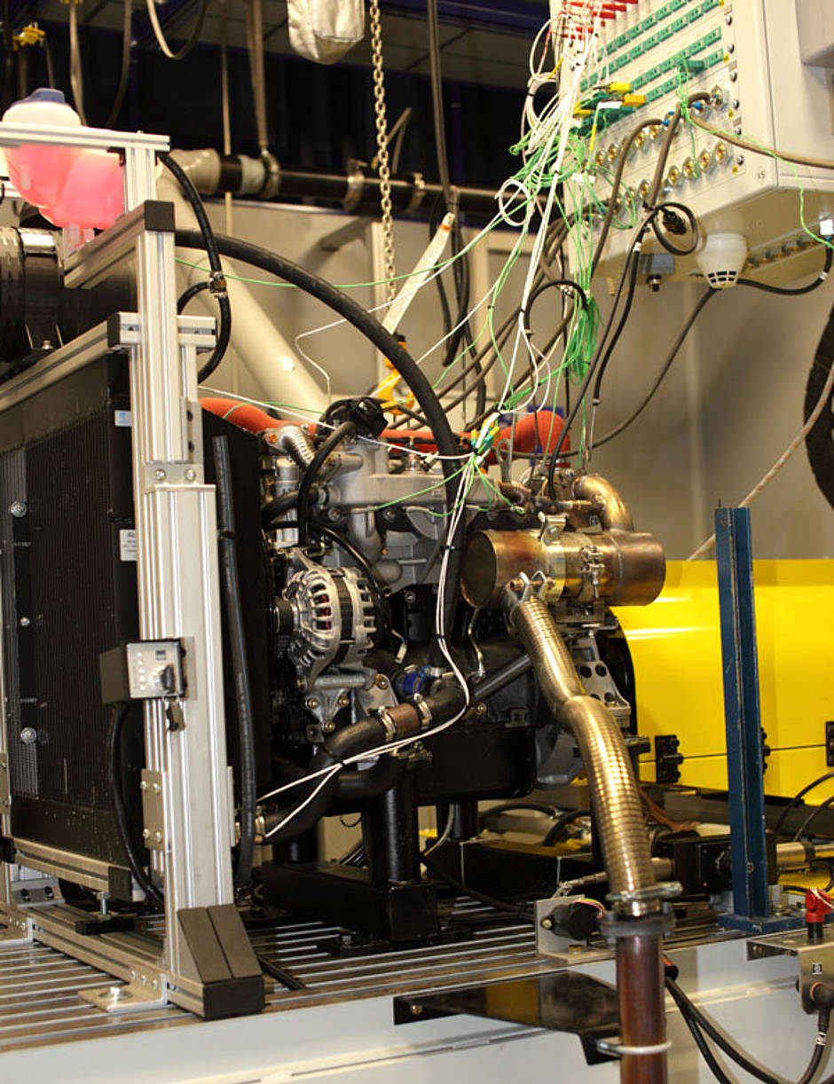 Mit dem Prototypen werden die Auswirkungen auf Motorleistung, Lärmentwicklung und Abgasverhalten durch den Einsatz von Wasserkühlung untersucht.