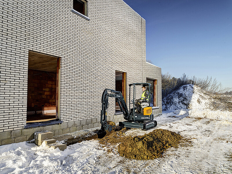 Des Weiteren sind die Maschinen mit Hydraulik-Joysticks ausgerüstet, die denen größerer Bagger der A-Serie ähneln. Optional können die Joystick-Köpfe mit Proportional-Bedienschaltern für die Durchflussregelung in der Zusatzhydraulik versehen werden. Alle Modelle ab dem HX40A sind nunmehr serienmäßig mit einem Load-Sensing-Hydrauliksystem ausgestattet, das eine leistungsfähige und präzise Bedienung ermöglicht. Eine einzelne Verstellpumpe mit möglicher Durchflussverteilung gestattet die reibungslose, gleichzeitige Nutzung verschiedener Hydraulikfunktionen, wodurch sich die Maschinen bei diffizileren Grab- und Planierarbeiten mühelos kontrollieren lassen. Zudem wurden die Komponenten der Hydraulikanlagen neu positioniert, wobei sich das Hauptregelventil nun zur leichteren Wartung auf der rechten Seite des Baggers befindet.
