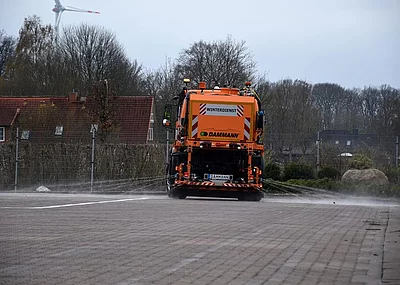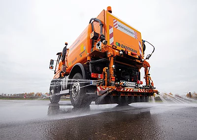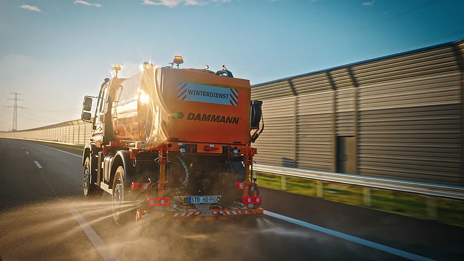 Auch in dieser Wintersaison kommen die KS-Sprüher wieder zum Einsatz, insbesondere in der Übergangszeit. Sole hat den Vorteil, dass sie präventiv am Vorabend, bei wenig Verkehr, aufgebracht werden kann. In der Zeit der Reifglätte und bei stärkerem Verkehr ist ein Vorankommen des Winterdienstes nur schleppend möglich. Die Sole beugt Glätte vor und es kommt zu keinen Verweh-Verlusten wie bei reinem Streusalz FS30. Über einen speziellen Rechner wird die ausgeklügelte Düsentechnik zur Ausbringung der Sole gesteuert.