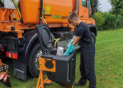 Ein besonderes Augenmerk wurde bei der Konstruktion auf einfaches Handling gelegt. Der Anwender hat die Möglichkeit, den Winterdienst in wenigen Schritten auszuführen. Mit nur 2-3 Tastendrücken lässt sich die Applikation starten und beenden. Gleiches gilt für die Wartung.