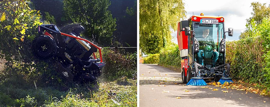 Komplettiert wird das Angebot durch zwei handgeführte Modelle, den HMC 110 und den HRT 135 mit Pendel-System, welche Arbeitseinsätze an Hängen bis zu 100 Prozent/45 Grad Gefälle ermöglichen. Der komplette Motorblock mit Bedienholmsystem lässt sich dabei in 15-Grad-Stufen horizontal zum Hang ausrichten. Das sorgt für eine bessere Gewichtsverteilung und gewährleistet eine optimale Schmierung des Motors und somit eine lange Lebensdauer. Durch diese Einstellmöglichkeiten erhöht sich die Ergonomie für den Bediener erheblich, da alle Bedienelemente ebenfalls horizontal zum Hang ausgeglichen werden und lassen sich somit auch unter schwierigen Bedingungen bequem und sicher erreichen. Zusätzlich lassen sich beide Modelle mit Stahlantriebsrädern ausrüsten, die für mehr Grip an Steilhängen sorgen.