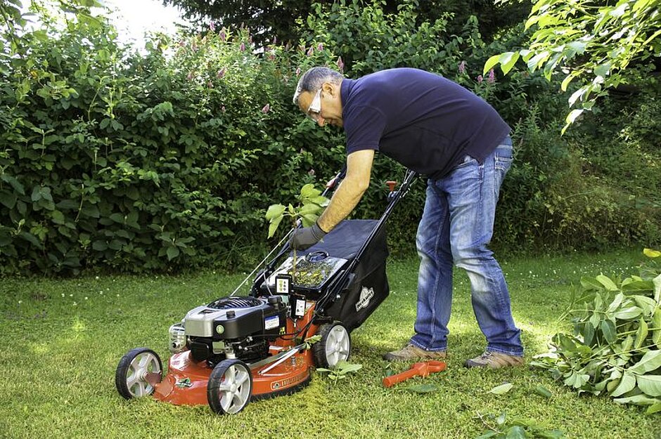 3. Grasschnitt durch den Heckdeflektor nach hinten auswerfen