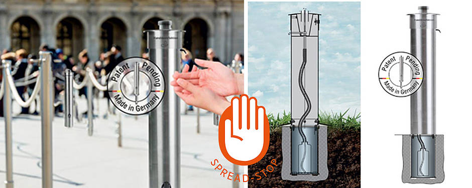 Die Lösung hat nun die Firma Gebr. Sträb GmbH & Co. KG aus Wendlingen am Neckar: stationäre und wetterfeste Desinfektionsmittelspender von Spread-Stop. Das Prinzip dabei ist einfach: Die Flaschen mit dem Desinfektionsmittel werden im Inneren von hochwertigen ortsfesten Edelstahlsäulen gelagert. So ist die Desinfektionsflüssigkeit gegen äußere Einflüsse und ungewollten Zugriff geschützt. Innovative Verfahren bieten Isolation um den Einfluss von Temperaturschwankungen auf die empfindliche Flüssigkeit zu verringern. Das System kann mit den gängigen 1.000-ml-Spenderflaschen bestückt werden, modellabhängig beträgt das Fassungsvermögen bis zu fünf Liter. Zum Austausch der Spenderflaschen ist eine nutzerfreundliche Serviceöffnung angebracht, die zur Verhinderung ungewollten Zugriffs mit einem 3-Kant-Verschluss gesichert ist.