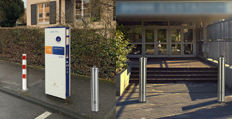 2 in 1: Absperrpoller mit integriertem Desinfektionsmittelspender