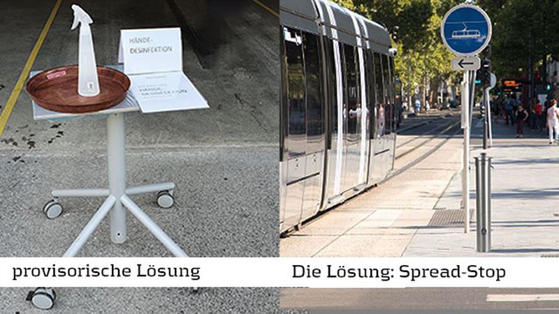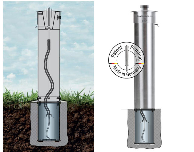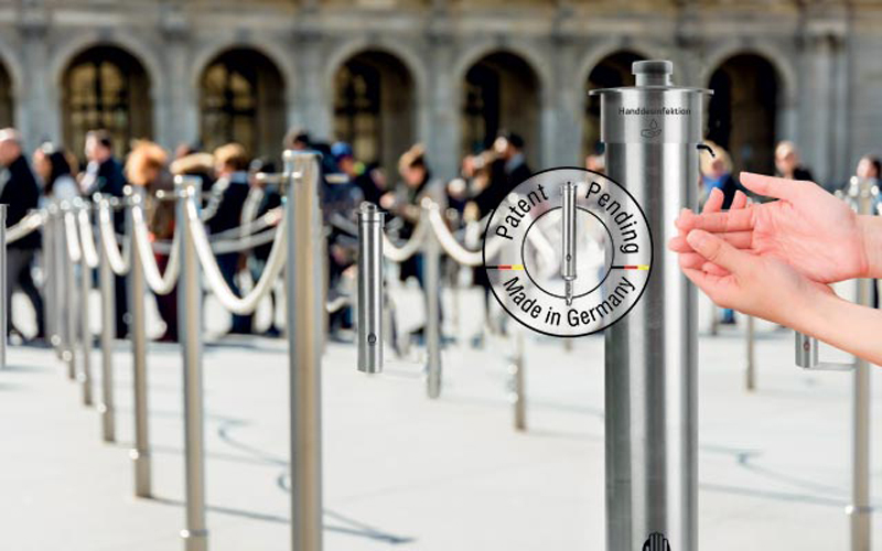 Im Kampf gegen Corona spielt Handdesinfektion eine entscheidende Rolle. Die Nutzung bestehender Desinfektionsspender ist derzeit überwiegend auf geschlossene Räume beschränkt. Im Außenbereich dagegen werden in Ermangelung geeigneter Systeme die unterschiedlichsten provisorischen Eigenlösungen eingesetzt. Und dass, obwohl Handdesinfektion im öffentlichen Raum für Spielplätze, Sportveranstaltungen, Marktplätze usw. so wichtig ist.