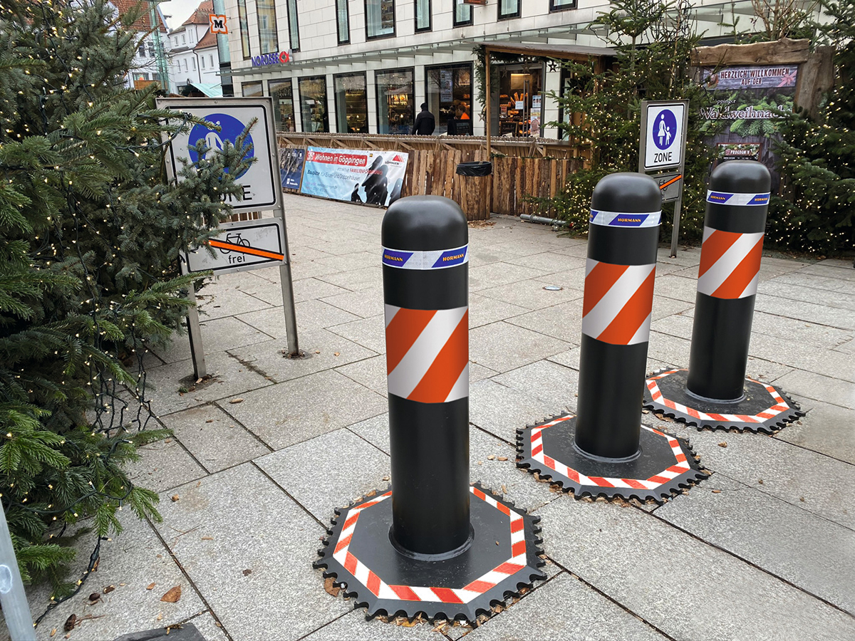 Beide Hörmann-Systeme zeichnen sich durch ihre mobile Einsatzfähigkeit aus: Sie benötigen keine Bodenverankerung oder Stromanschlüsse und lassen sich rasch auf- und abbauen. Damit sind sie besonders geeignet für temporäre Absperrungen in sensiblen Bereichen wie Fußgängerzonen, Veranstaltungsflächen oder Zufahrten zu öffentlichen Einrichtungen. Und das nicht nur zu Weihnachten.