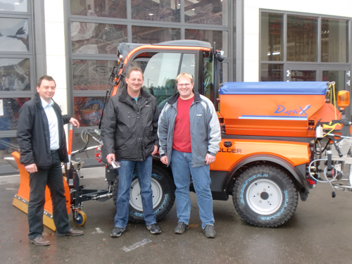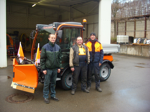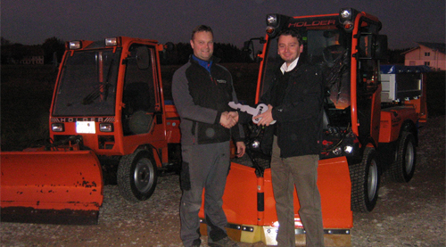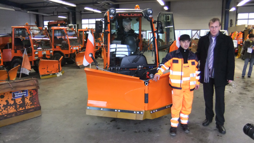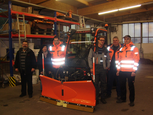 - Der neue Holder C 270 wurde mit Anbaugeräten für den Winterdienst (Kugelmann Schneeschild und Streuer) sowie einer Mäh-Sauggarnitur von Kalinke für den Sommereinsatz ausgeliefert.