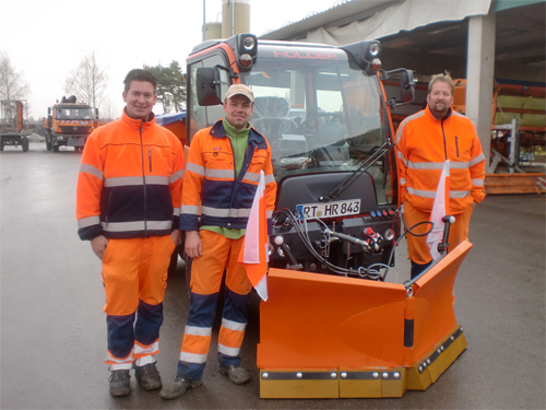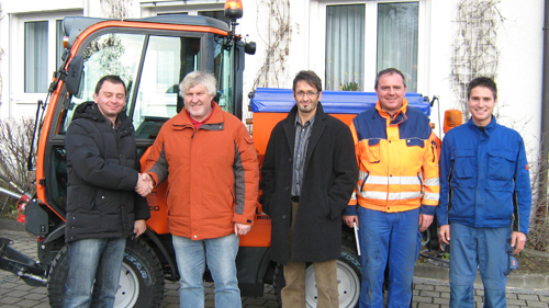- Auf dem Foto von links: Rene Senser, Hr. Steiner Bauhofleiter, Hr. Gensberger (Kämmerer), Hr. Kobold und sein Kollege (Winterdienstfahrer).