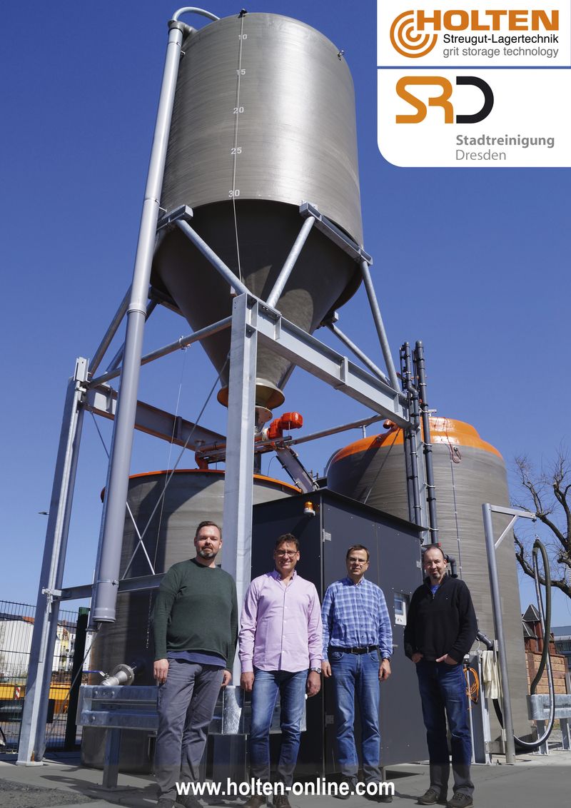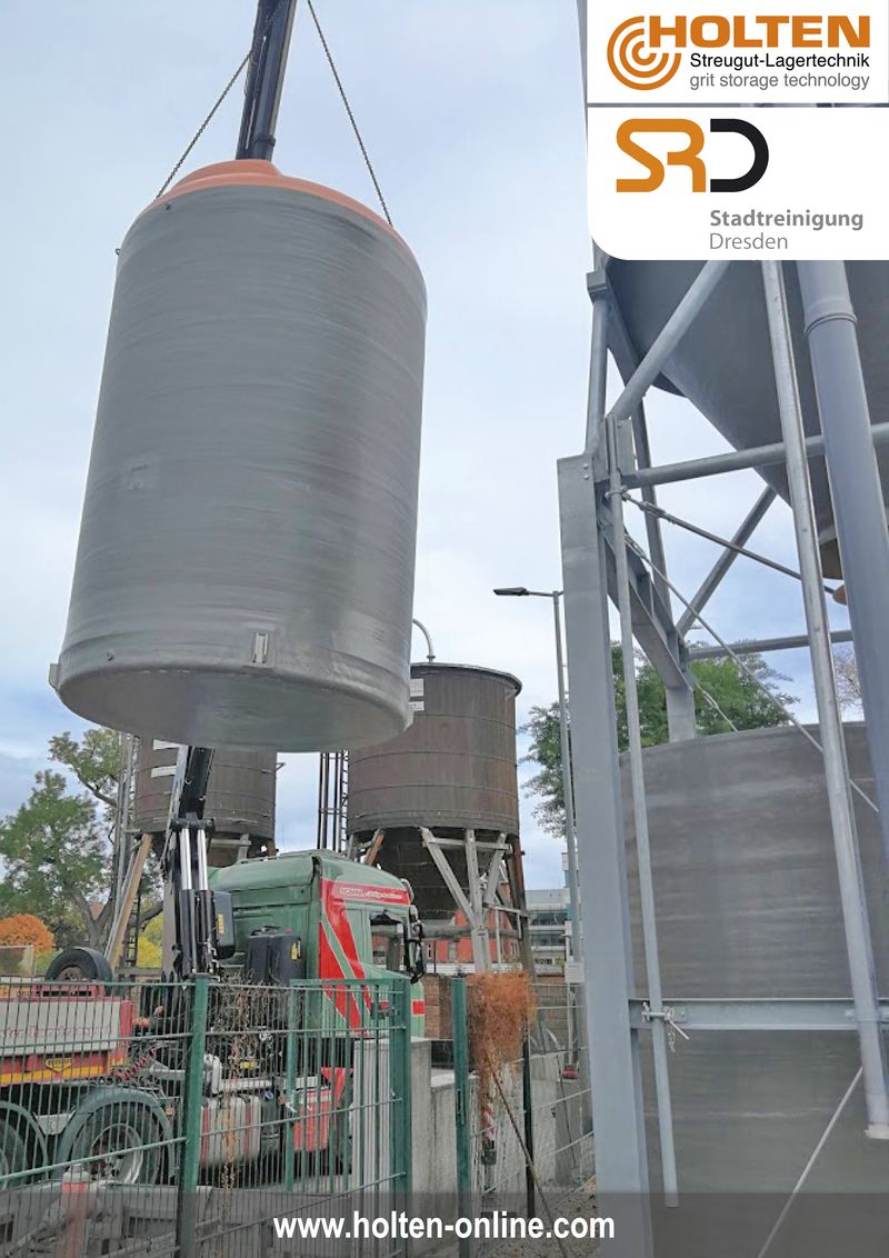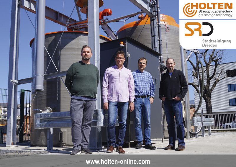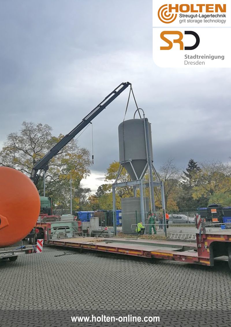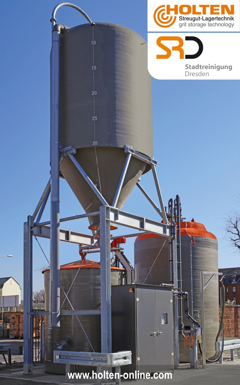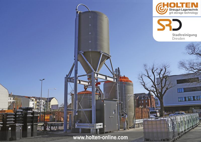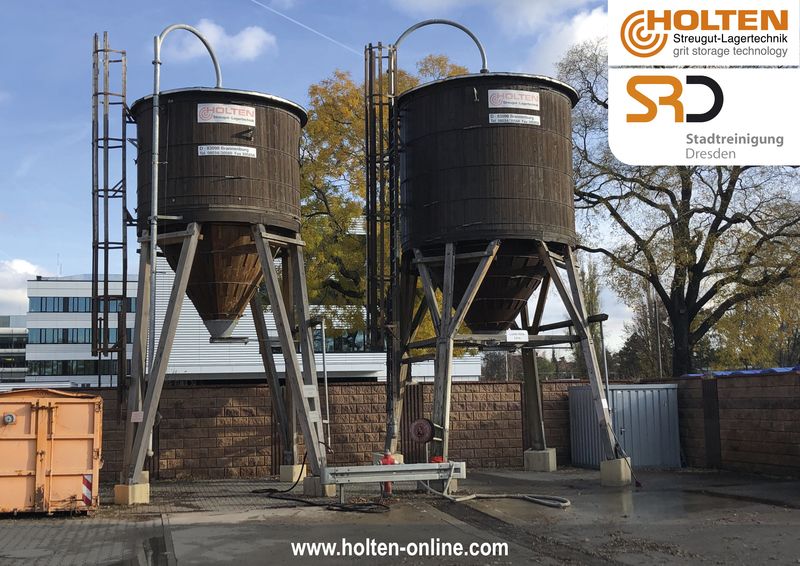 Mit Stolz erfüllt HOLTEN die fast 30-jährige Kundenbeziehung zur „Stadtreinigung Dresden GmbH“, seit das Unternehmen erstmals 1992 jeweils ein Splitt- und Salzlagersilo liefern durften, welche sich noch heute im einwandfreien Betrieb befinden.