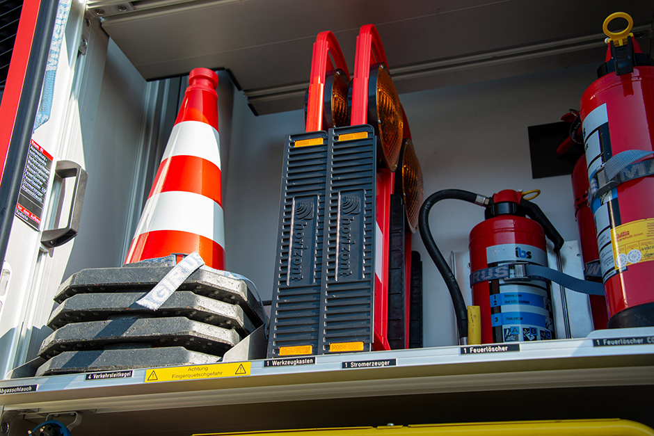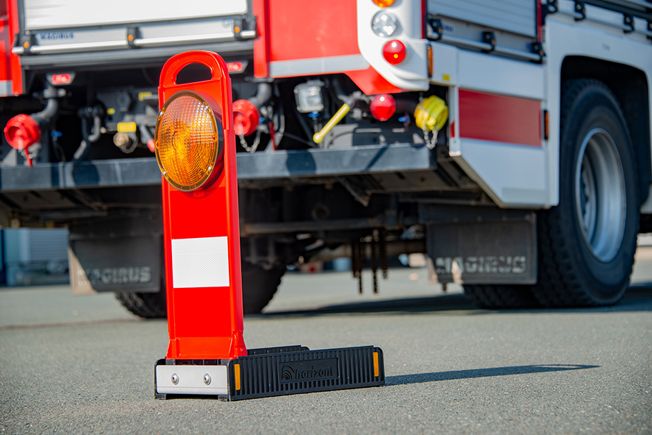 In den Fahrzeugen der kommunalen Bauhof-Betriebe ist häufig nicht viel Platz. Trotzdem soll an der Sicherheit bei der Schnellabsicherung von ungeplanten Einsatzstellen nicht gespart werden. Die Klappbake FlashMax Stack ist die Lösung für dieses Problem: Dank der besonderen Unterkonstruktion aus stabilem Edelstahlfuß und integrierter Kunststoffstapelschiene können mehrere Klappbaken leicht gestapelt werden. Diese Art der Lagerung nimmt wenig Platz in Anspruch.