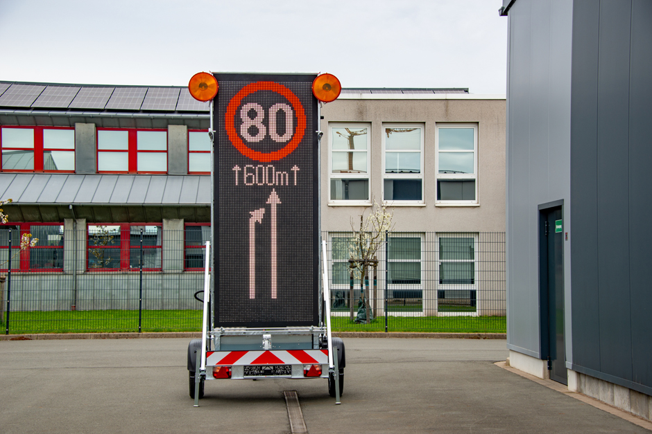 Mit einem zulässigen Gesamtgewicht von 750 kg darf das SingleBoard auch mit Solar-Kit – und daher mit einfachem Pkw-Führerschein – transportiert werden. Bei der LED-Tafel kommt die Linsen-Technologie zum Einsatz: Vor jeder LED sitzt eine Linse, die das Licht bündelt und nach gesetzlicher Vorgabe ausstrahlt. Auf diese Weise wird Energie gespart und die Lämpchen werden geschont.