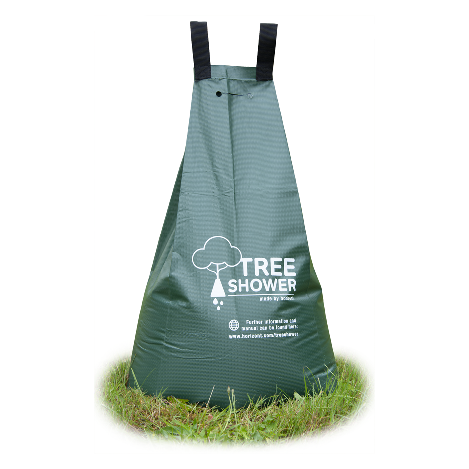 Gerade frisch gepflanzte Bäume und Gehölze benötigen eine ausreichende Wasserzufuhr. Um die Bewässerung möglichst effizient zu gestalten, bietet horizont eine kluge Lösung: den TreeShower-Bewässerungssack. Langsam und kontinuierlich gibt das durchdachte System seine Füllmenge von 75 Litern Wasser tröpfchenweise in den Boden ab, sodass beim Bewässern nichts durch oberflächliches Ablaufen verloren geht.
