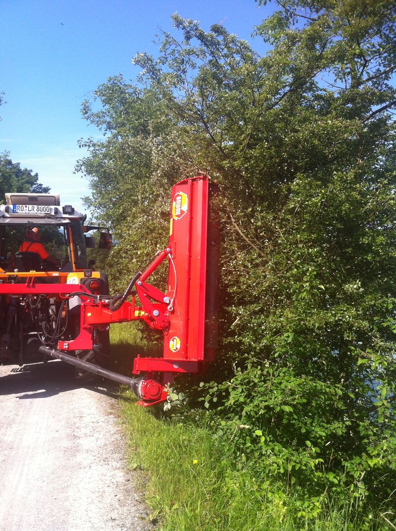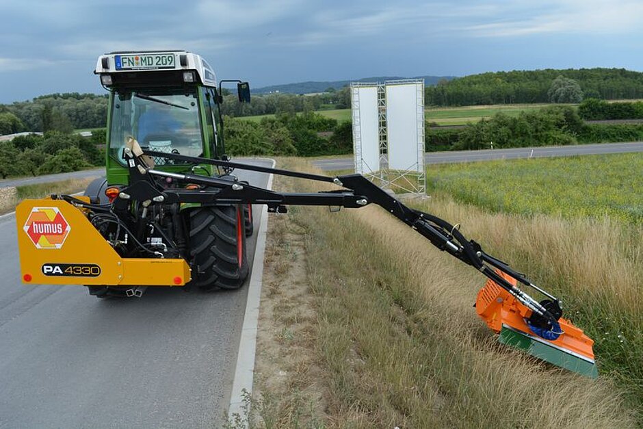Das Seitenmulchgerät humus SP kann als Heckmulcher direkt hinter dem Schlepper eingesetzt werden. Mit langem Parallelogramm wird es seitlich neben dem Schlepper geschwenkt, um Wege- und Straßenränder sowie Böschungen und Gräben zu mulchen. Der stufenlose Neigungsbereich von 90 Grad nach oben und 60 Grad nach unten sowie die stufenlos einstellbaren Schwenkbereiche bieten einen großen Einsatzbereich. Die Laufwalzen garantieren eine gute Bodenanpassung und exakte Schnitthöhenführung.