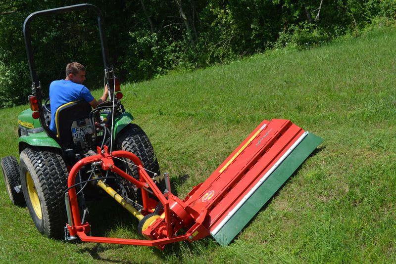 Die humus Baureihe SSG kann heckseitig an alle Klein-/Kompakttraktoren angebaut werden und ist in Links- und Rechtsausführung lieferbar. Diese Baureihe ist besonders vielseitig einsetzbar. Mit diesem Mulcher können Einsatzgebiete bearbeitet werden, die für einen Frontmulcher unerreichbar sind. So werden Gräben und Böschungen bequem gemulcht. Auch das Mulchen unter Büschen und Hecken wird zum Kinderspiel. Am Schlepper wird nur ein einfach wirkendes Steuergerät benötigt.