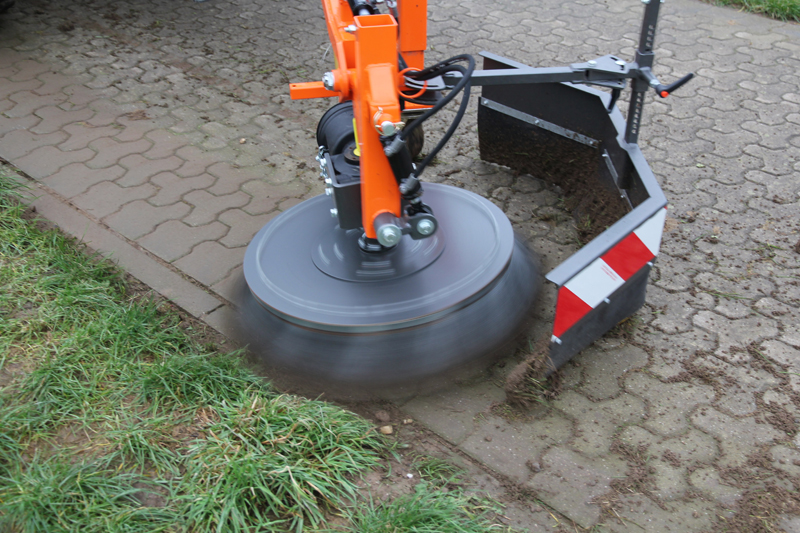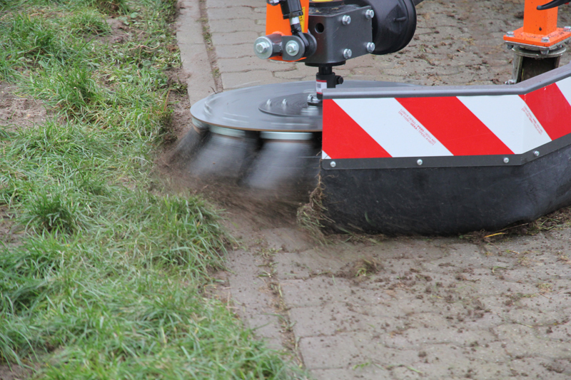 Die zapfwellengetriebene Wildkrautbürste ist besonders zum gründlichen Entfernen von Unkraut und Schmutz an Rinnen, Gehwegen, Bordsteinen und allen harten Oberflächen geeignet. Der Bürstenwinkel ist vom Fahrersitz aus dreidimensional einstellbar. Der Besenteller ist rechts und links stufenlos schwenkbar und stets im direkten Blickfeld des Fahrers. Zusammen mit der bewährten Husqvarna Hecklenkung des Riders wird eine herausragende Wendigkeit und hohe Flächenleistung erreicht. So können zum Beispiel enge Einsatzbereiche wie Baumschalen und enge Wegeradien in einem Zug - ohne Rangierarbeit - effektiv gereinigt werden.