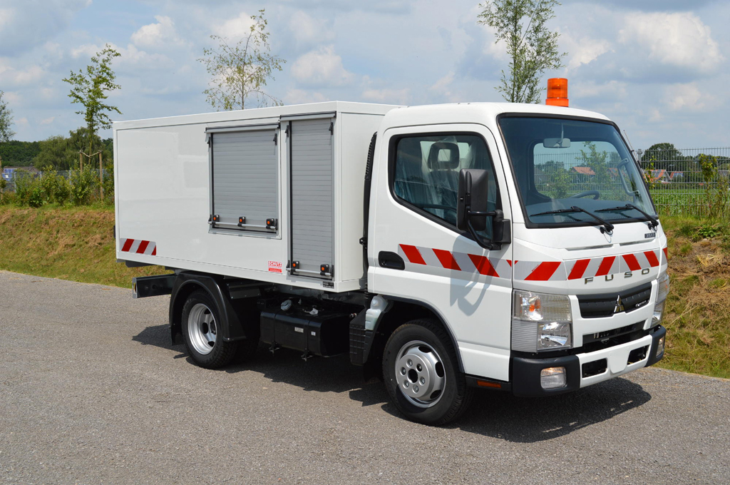Der Fuso-Canter 3S13 eignet sich mit seinem kurzen Radstand von 2500 mm sowie der geringen Spurbreite besonders für den City- Einsatz. Mit einer Gesamtaufbaubreite von nur 1800 mm kommt dieser kleine LKW in die kleinsten Gassen und ist dabei extrem wendig.