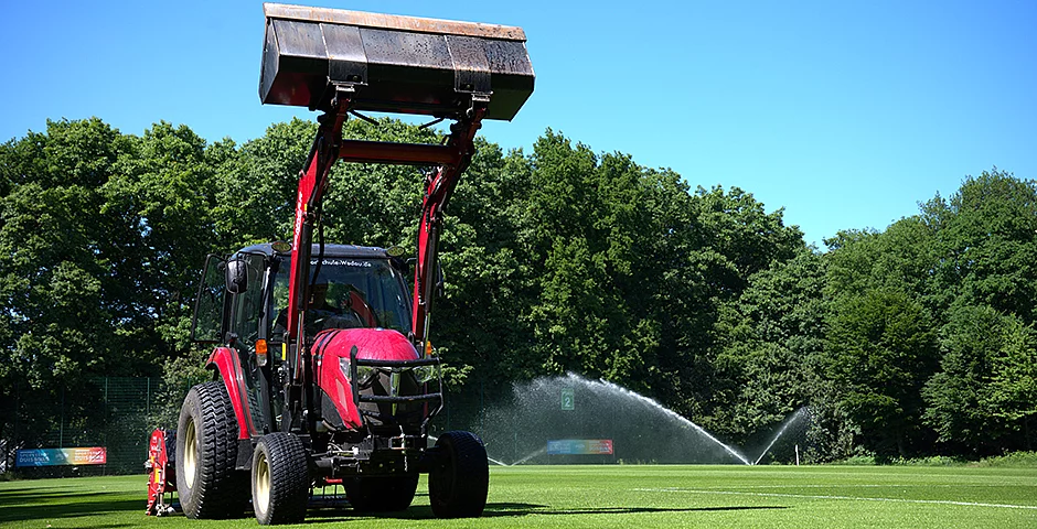 Dirk Holstein, Greenkeeper an der Sportschule Wedau in Duisburg, kennt die Ansprüche des Spitzenfußballs genau. Kein Wunder, denn hier, auf dem Gelände der größten Sportschule Deutschlands, trainieren regelmäßig Nachwuchstalente und Nationalmannschaften. Wenn ein großes Turnier ansteht, zählt jedes Detail – vor allem der Zustand der Spielfläche. „Denn der zwölfte Mann ist immer der Rasen“, wie Holstein betont. Bei der Pflege des Grüns kommt es auf zahlreiche Arbeitsschritte an, für die ein starkes Trägerfahrzeug benötigt wird.
