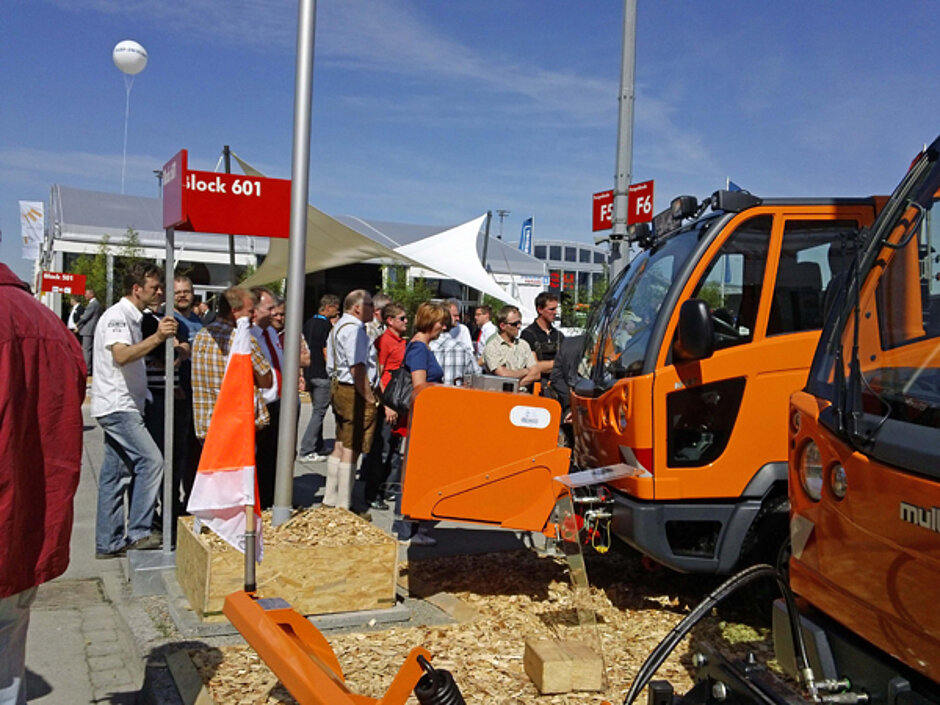 Ein Multicar lebt auch durch die Vielfalt und Flexibilität der An- und Aufbaugeräte. Auch hier gab es viele innovative Lösungen zu begutachten. Zum Beispiel die neue Frontkehrmaschine mit Mittelantrieb FKM 1300/1500 von Fiedler. Das schmal bauende Stirnradgetriebe im Ölbad ist wartungsfrei und garantiert eine lange Laufleistung der extra großen Bürste mit 600 mm Durchmesser. Die Arbeitsbreite ist mit 1300 und 1500 mm ideal auf die Breite der Geräteträger TREMO ausgerichtet und bietet so ideale Voraussetzungen zum Arbeiten in engen Bereichen. Auch der Vorbau-Hochdruckanbau von Reinex an einem Multicar M 27 C stieß auf reges Interesse. Die Hochdruckanlage mit Reinigungslanze kann bequem an der vorderen Anbauplatte des Geräteträgers angedockt und über dessen Hydraulik angetrieben werden. So bleibt noch genug Platz für ein zweites Anbaugerät, wie zum Beispiel einen Sinkkastenreiniger von Schmailzl auf dem Rücken des kompakten Geräteträgers.