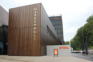 Stimmengewirr erfüllt die neue Stihl Markenwelt. Das Forum des Forsttechnik-Museums im schwäbischen Waiblingen ist mit Journalisten, Medienvertretern und Anwendern aus der ganzen Welt gefüllt. Niederländer, Finnen und sogar Amerikaner sind angereist, um die neusten Entwicklungen der Traditionsmarke in Erfahrung zu bringen.