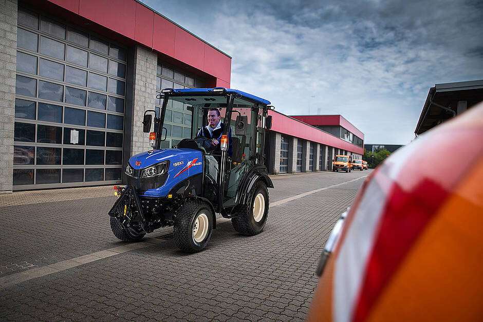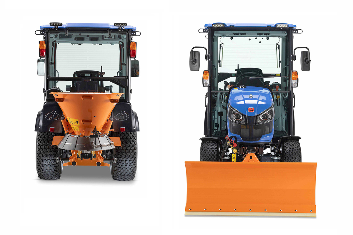 Alle Traktoren zeichnet eine besondere Kompaktheit aus. So können sie z.B. im Winterdienst auch auf schmalen Wegen sowie in engen Gassen zum Einsatz kommen und auf begrenzten Flächen gut manövrieren. Ein speziell entwickelter Frontkraftheber, der ganz nah am vorderen Rahmen angeflanscht ist, sorgt dafür, dass die Maschinen selbst mit Anbaugeräten kompakte Abmessungen aufweisen. Da unterschiedliche Bereifungen verfügbar sind, kann die Gesamthöhe des Traktors mit Kabine von 2.040 mm auf unter zwei Meter reduziert und damit sogar beispielsweise ein Befahren von Tiefgaragen ermöglicht werden.