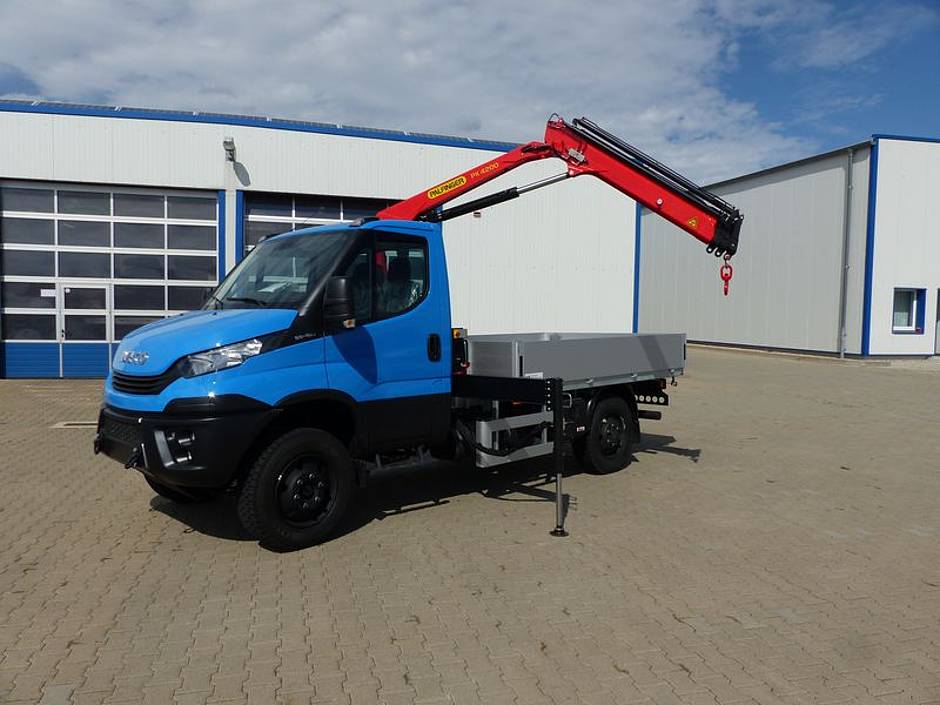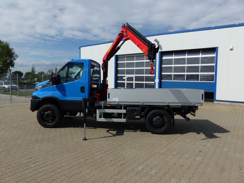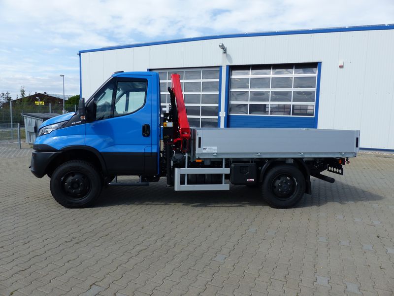 Mit dem modifizierten 5,5 t Iveco Daily Allrad 55S18 H WX 4x4 präsentiert Kunath Fahrzeugbau ein Allwegefahrzeug mit Palfinger-Ladekran und Kunath-Pritsche. Bereits seit 20 Jahren fungiert der Fahrzeugbauer als Palfinger-Vertriebs- und Servicepartner, und ebenfalls seit 20 Jahren hat sich Kunath als Aufbauhersteller für Lkw, Transporter und Pickups einen Namen gemacht.
