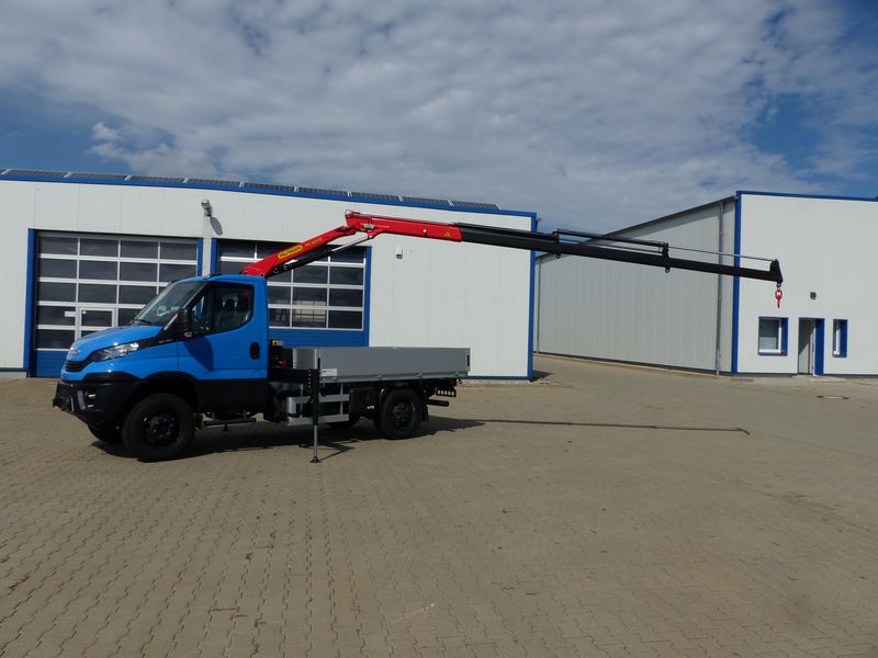 Ein Palfinger-Ladekran PK4200 ist am Fahrzeug vebaut. Der Knickarmkran verfügt über ein Hubmoment von 3,9 Metertonnen, einen hydraulischen Dreifachausschub auf 8,1 Meter sowie über eine auf 4,1 Meter ausziehbare seitliche Abstützung (links und rechts) mit hydraulischen Stützzylindern zur Gewährleistung der Standsicherheit. Zum Schutz des Fahrzeugrahmens ist über dem Fahrerhaus eine Schwenkbereichsbegrenzung angebracht. Über eine Funkfernsteuerung werden die Kranfunktionen bedient. Die Ölversorgung des Krans wird über einen am Fahrzeug integrierten Nebenabtrieb sowie eine Bosch Rexroth Pumpe sichergestellt. Als Zubehör können zwei LED-Arbeitsscheinwerfer, zwei Werkzeugkisten sowie eine Standheizung geordert werden.