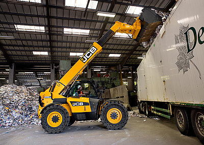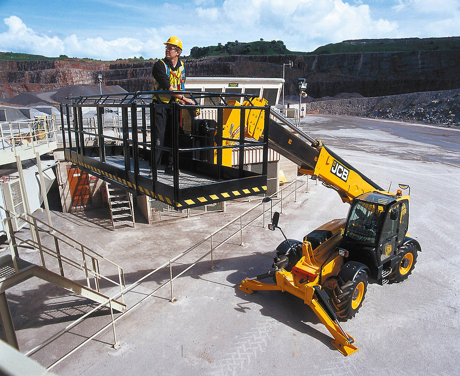 Mit fast 17 Metern Hubhöhe und einer Vorwärtsreichweite von mehr als 12 Metern ist der Teleskoplader JCB 540-170 eines der Flaggschiffe in Sachen Performance. Er wird vor allem im Hochbau, in der produzierenden Industrie, aber auch im Tiefbau - etwa beim Verlegen von Rohren - eingesetzt. Seine Palettengabeln tragen bis zu 4 Tonnen Gewicht und selbst bei voller Hubhöhe von 16,7 Metern schafft der Lader spielend noch 2,5 Tonnen. Ausgerüstet mit optionalen Arbeitsplattformen unterstützt er auch Handwerker, die an Fassaden oder auf Dächern tätig sind.
