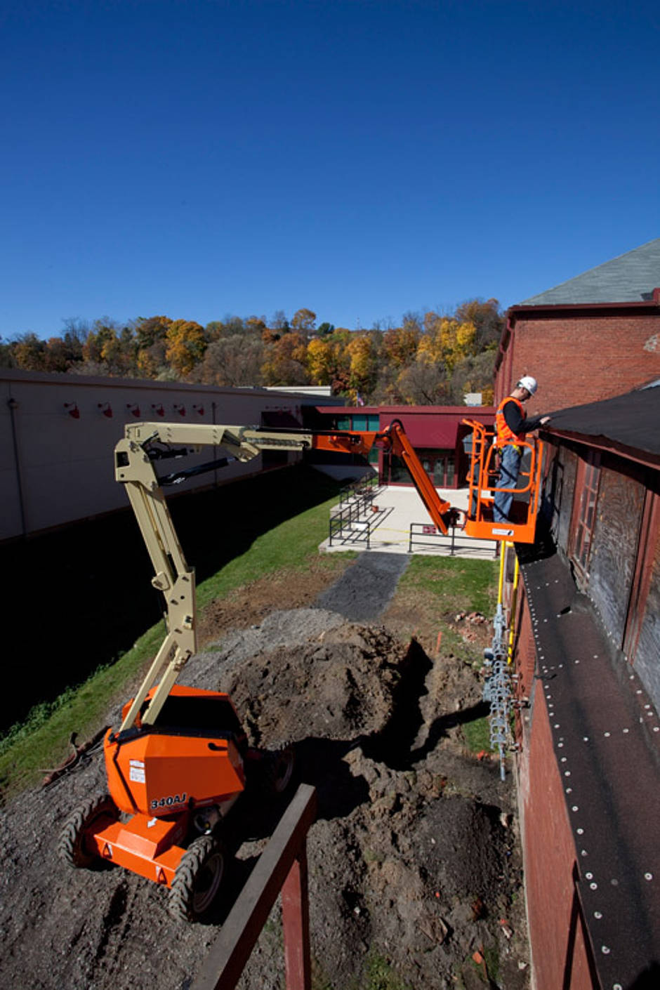 Außerdem wird die JLG Gelenkteleskopbühne 340AJ präsentiert. Mit Allradantrieb, einem exzellenten Design, das zum Beispiel die Wartung vereinfacht, und mit einer robusten Bauweise stellt sie ein effektives Arbeitsgerät dar. Angetrieben von einem kraftvollen Motor, ist sie für ein breites Anwendungsspektrum im Außenbereich ideal geeignet. Die Arbeitshöhe beträgt etwa 12 m und die Beweglichkeit der Bühne ist auch durch den 1,20 m langen Korbarm hervorragend.