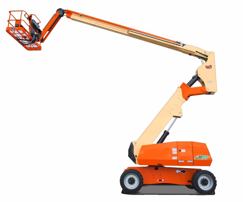 Mit der H800 bringt JLG eine weitere Hybrid-Gelenkteleskopbühne auf den Markt. Die Plattformhöhe von 24,38 m und die horizontale Reichweite von 15,80 m bieten mit dieser Hybrid-Bühne viele Einsatzmöglichkeiten in den unterschiedlichsten Aufgabenbereichen. Angetrieben von Batterie oder Dieselmotor ist die H800 ein sehr bewegliches Arbeitsbühnenmodell. Fast fünf km/h schnell, besitzt es im Vierradantrieb eine Steigfähigkeit von 40 Prozent. Der Oberwagen lässt sich durchgehend um 360 Grad schwenken. Die Plattform kann 226,8 Kilogramm tragen.