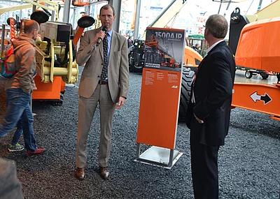 Gemietet sind die JLG Bühnen für mehrere Monate von dem Vermieter Theisen GmbH, der zur finnischen Cramo Gruppe gehört. Die Niederlassung in Chemnitz ist neu und wurde im Februar dieses Jahres eröffnet. Ingo Krause, der zuständige District Manager von Theisen Baumaschinen für Thüringen und West-Sachsen, beschreibt: „Wir haben jetzt in Chemnitz für unsere Kunden 100 Arbeitsbühnen im Mietpark. Wir denken, dass wir damit ein sehr gutes Angebot, sowohl für Bau als auch Industrie und andere Branchen, zur Verfügung stellen.“ Zu diesem Maschinenpark gehören über 50 unterschiedliche JLG Arbeitsbühnen. Theisen bietet vor Ort neben Miete auch Service, Reparatur und IPAF-Schulungen an. Wie Krause sagt, wird der Maschinenpark noch erweitert. So ist geplant, unter anderem weitere JLG Scheren- und Hybridbühnen mit größeren Arbeitshöhen in das Programm mit aufzunehmen. Sie werden auch für den Bau der Halle in Chemnitz von Bedeutung sein. Denn nach dem Errichten des Haupttragwerks entsteht das Sekundärtragwerk mit 2.600 lfm Pfetten und Wandriegel. Danach wird die Fassade montiert. 2.100 m² Dachtrapez- und 2.000 m² Wandtrapezbleche inklusive Lichtplatten sind zu montieren: Aufgaben, die mit Hilfe der JLG Bühnen effizient gemeistert werden.
