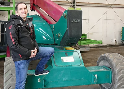 Ein weiterer wichtiger Pluspunkt dieser JLG Teleskoparbeitsbühne ist, dass sie von einem kräftigen 36,4 kW/49 PS starken Dieselmotor angetrieben wird, der vom Korb aus sehr feinfühlig gesteuert werden kann. Das hydrostatische Fahrgetriebe ist in der Lage, weich und präzise auf die Steuerbefehle zu reagieren. Die kommen von einer vollproportionalen Joystick-Steuerung. Auch der Teleskoparm und die Schwenkfunktion werden vollproportional per Joystick gesteuert. So ist der innere Wenderadius von 2,01 m sehr gut nutzbar, um die diffizilen Manöver, die notwendig sind, um alle Montagepunkte zu erreichen, effektiv ausführen zu können. Zudem sind unterschiedliche Geschwindigkeiten für die Teleskop- und Arbeitskorbdrehung einstellbar, was die Arbeit der Monteure erleichtert, wie auch der mögliche Kriechgang für Fahrt-, Hebe- und Schwenkfunktion. Die Plattform mit 76 cm Breite und 1,83 m Länge kann 230 kg tragen. Auch dies ein Pluspunkt für die JLG Bühne, weil damit zum einen der Monteur, zum anderen Werkzeuge und eben auch Material für die Montage mitgeführt werden können. Steffen Fuchs, Geschäftsführer von Fuchs & Kovatsch, sagt: „Wir arbeiten gerne mit den JLG Bühnen, weil sie unsere Anforderungen, die wir bei den Montagen haben, bestens erfüllen.“