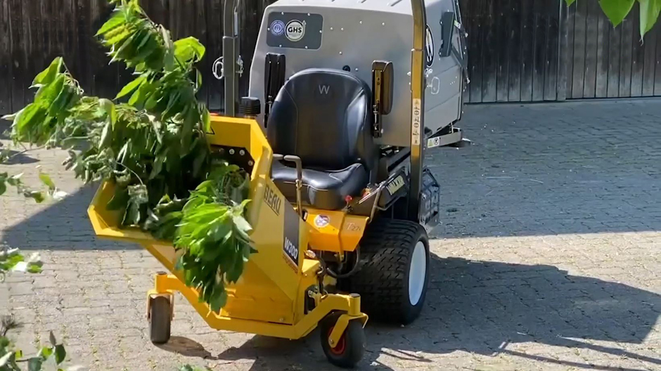 Der Jo Beau W300-Häcksler ermöglicht es, Walker-Mäher mit Auffangwanne das ganze Jahr über zu nutzen, einschließlich der kalten Wintermonate. Zum Betrieb benötigt das Gerät eine Leistung vom mindestens 16 PS, um eine Aststärke von maximal 80 mm zu verarbeiten. Dabei wird die Messertrommel, die Äste und Grünabfälle automatisch und ohne Einzugswalzen aufnimmt, von der Kardanwelle des Frontmähers angetrieben. Zerkleinerte Holzspäne und andere Gartenabfälle werden in der Auffangwanne des Mähers gesammelt, was eine einfache und saubere Entleerung in einen Anhänger ermöglicht. Außerdem ist der Jo Beau W300 mit zwei schwenkbaren Rädern ausgestattet, die die Manövrierfähigkeit des Walker Zero-Turn Mähers nicht beeinträchtigen.