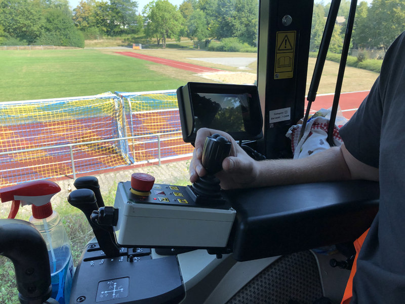 Sechs Festangestellte sowie Senior-Chef Karl-Heinz Müller und weitere zehn Aushilfen sind bei der Müller GmbH in Lohn und Brot. Wichtig für Welz in Zusammenhang mit dem Heckenprofi: „Du brauchst gute Fahrer, die mitdenken und wissen, was die Maschine leisten kann.“ Zumal die Heckenprofis laut Welz im Dauereinsatz sein sollten, um die Investition zu refinanzieren. Grundkenntnisse seien zwar in zwei Tagen vermittelt, bis ein Fahrer jedoch die Maschine „richtig bedienen“ könne, dauere es zwei bis drei Wochen, ist sich der Schwabe sicher. Und, weil sich Welz gegenüber der Konkurrenz über Leistung abheben will, hat er in den vergangenen Jahren in verlässlich-funktionierende Maschinen und gut ausgebildetes Personal investiert. Kein Wunder, dass die beiden Müller-Fahrer schneller die riesige Hecke um den Sportplatz zurechtgestutzt haben, als Geschäftsführer Welz und der bauhof-online-Chronist über Technik im harten Arbeitsalltag sprechen können.