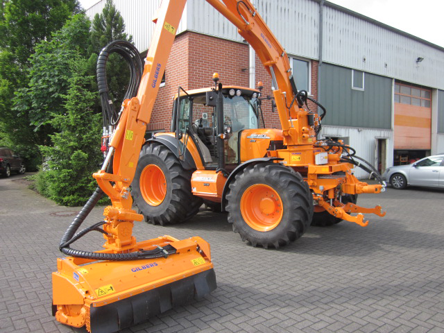 Der »Reborack« in Kommunalorange und mit Mähkonfiguration von Gilbers. Ab 2012 wird es auch Anbaugeräte von Mulag geben. Die Basis des Fahrzeugs bildet ein Traktor von John Deere.