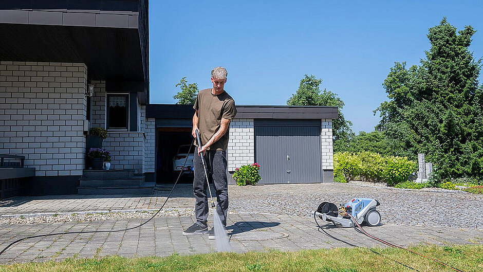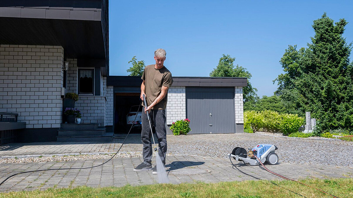 Auch bei Transport und Handhabung überzeugt das neue Modell mit durchdachten Details: Ein höheres Chassis und große, geländegängige Räder erleichtern das Ziehen des Geräts. Die Gummierung im Griff – bekannt aus der Kränzle Quickly-Serie – sorgt auch bei nassen Händen für sicheren Halt.