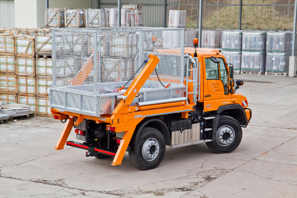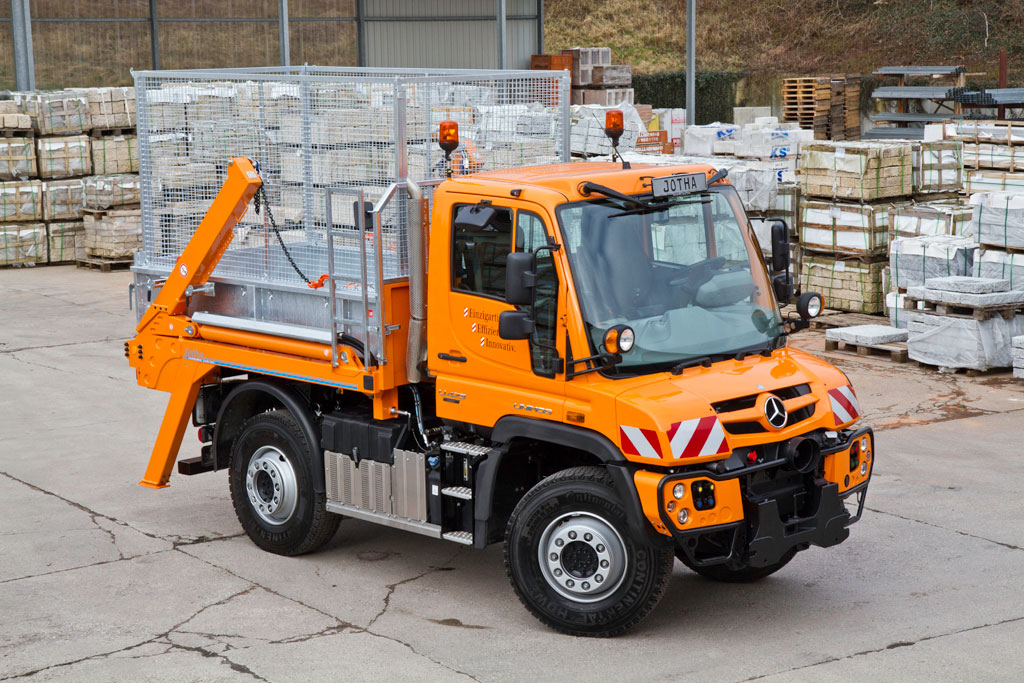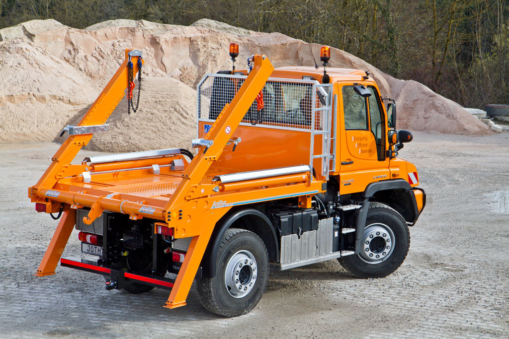 Die Fa. Jotha Fahrzeugbau fertigt seit über 30 Jahren Absetzkippsysteme und bietet Lösungen für alle Unimog-Typen an. Mit Hubleistungen bis zu etwa 6000 kg findet sich in der Jotha Palette für jedes Fahrgestell der passende Aufbau.