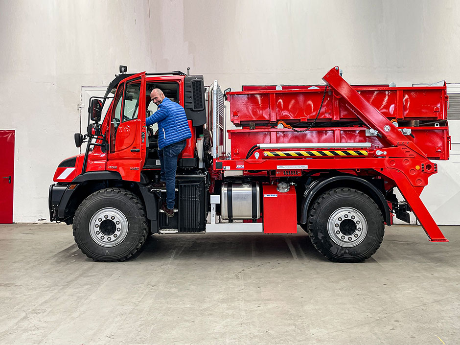Der Unimog war für mich schon immer etwas Besonderes. Als Kind fand ich die Kisten einfach nur cool und viel lässiger als „normale“ Lkw. Heutzutage finde ich den Unimog immer noch cool, weiß mittlerweile aber auch, wofür er in den unterschiedlichsten Branchen geschätzt wird: einzigartige Flexibilität, sehr großes Einsatzspektrum, Zuverlässigkeit und eine Vielzahl an Aufbau- und Anbaugeräten für unterschiedlichste Einsatzzwecke, um nur einiges zu nennen. Dass wir seit mehr als zwanzig Jahren fester Partner von Daimler Trucks sind und unseren Absetzkippaufbau CombiCon für alle Baureihen des Unimog aufbauen dürfen, macht mich schon sehr stolz.
