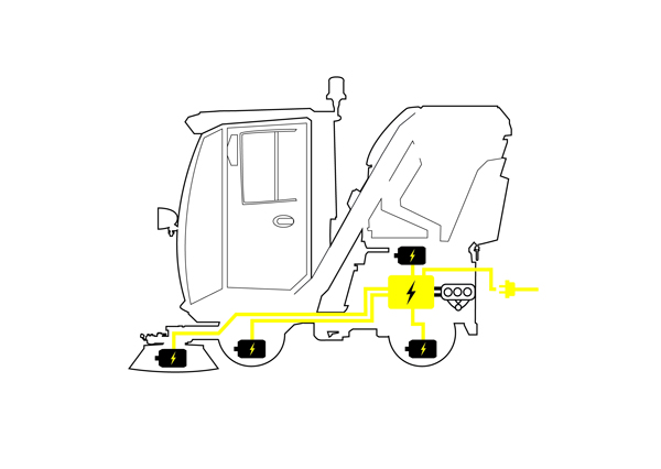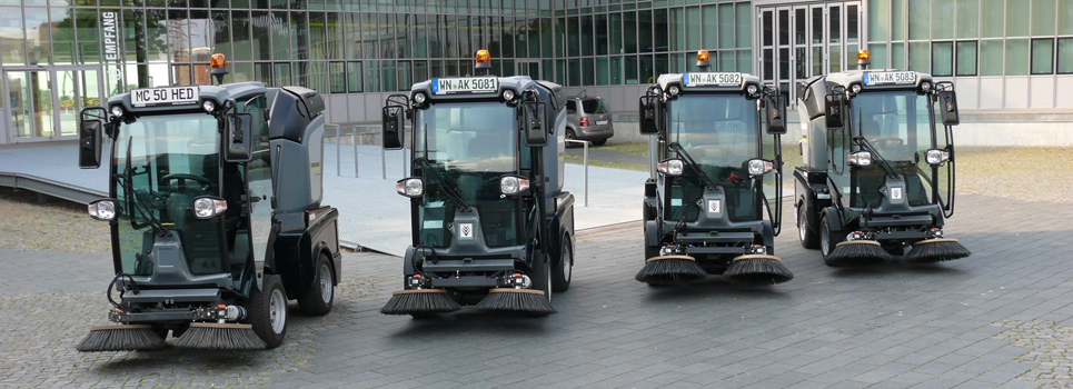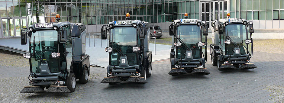Die Plug-in-Hybride basieren auf der kompakten kommunalen Saugkehrmaschine MC 50. Die 1,09 m breite Maschine ist dank eines inneren Wendekreises von nur 70 cm besonders beweglich. In der großzügig verglasten Kabine hat der Anwender sein gesamtes Arbeitsumfeld stets im Blick. Der Komfort der MC 50 bleibt auch erhalten: Es muss weder im elektrischen Betrieb noch bei zugeschaltetem Verbrennungsmotor auf die Klimaanlage verzichtet werden.