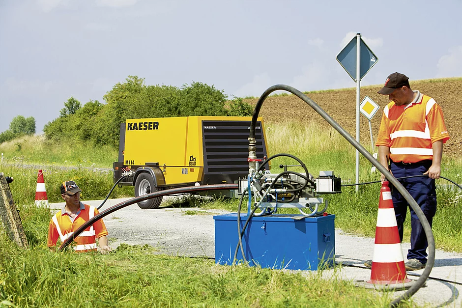 Keine Angst vor Umweltzonen. Kaeser Kompressoren präsentiert auf der Nordbau (Freigelände Nord, N 416) gleich mehrere neue Baukompressoren mit moderner Abgasnachbehandlung, die zuverlässig, effizient und kostengünstig Druckluft liefern.