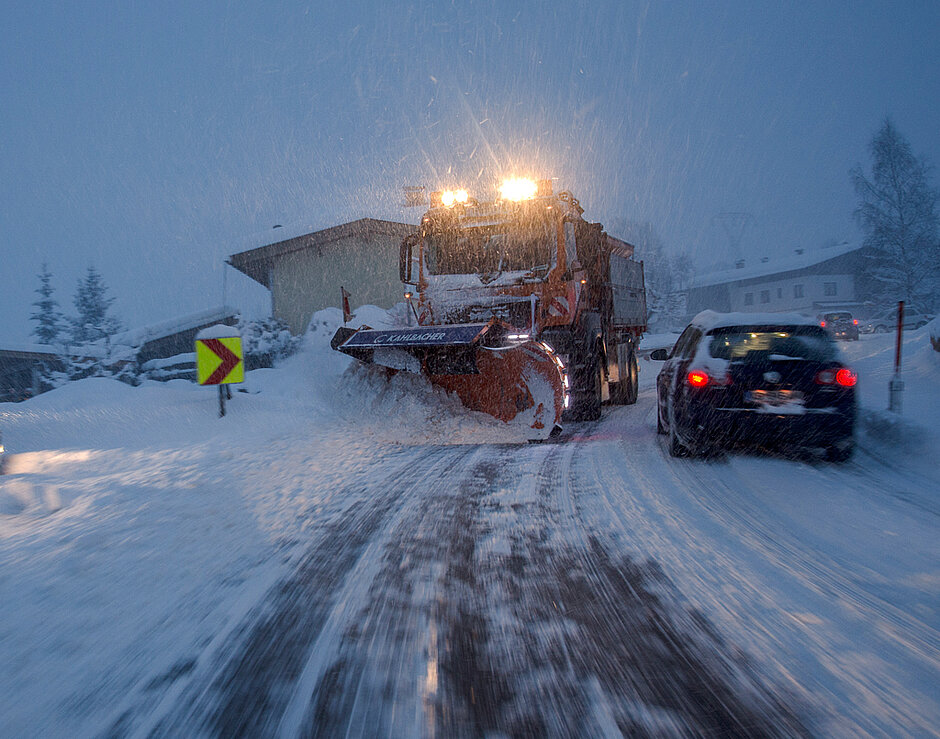 Jeder Autofahrer der im Winter oft auf den Straßen unterwegs ist, kennt das Problem. Geblendet von der Schneeräumbeleuchtung des Trägerfahrzeuges ist der Schneepflug nur noch als schwarze Fläche ohne genaue Größe sichtbar. Speziell auf den Landesstraßen mit Ihrer oftmals geringeren Fahrbahnbreite braucht es Routine um dem entgegenkommenden Räumfahrzeug auszuweichen.