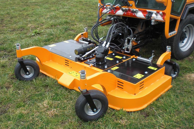Speziell für Trägerfahrzeuge mit Mittelabsaugung wurde eine Baureihe hydraulischer Mähwerke konzipiert. Der Antrieb der vier Messer erfolgt über einen Axialkolbenmotor und Keilriemen. Spezielles Augenmaß wurde auf die Bodenanpassung gelegt. Bei 185 cm liegt die Mähbreite. Der große Aufstellwinkel von 61 Grad erleichtert die Reinigungs- und Wartungsarbeiten.