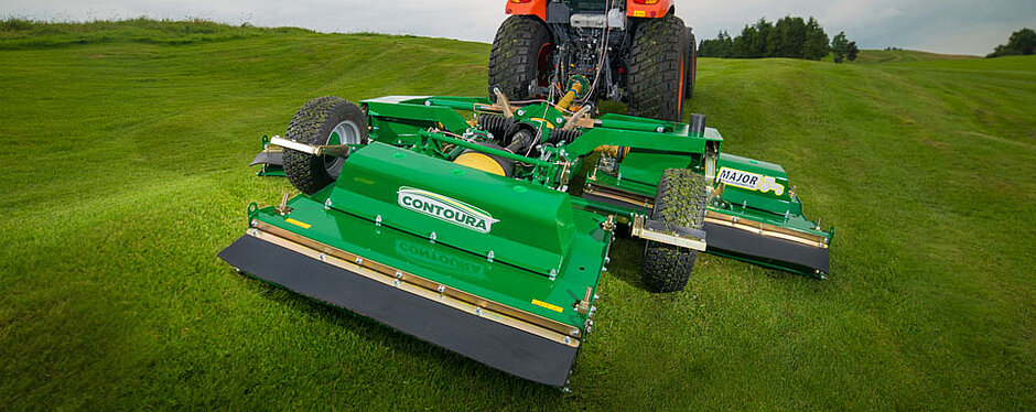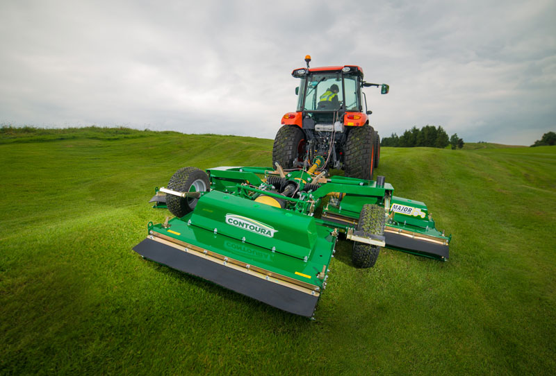 Nach dem Erfolg des Swift Rollermower - Sortiments freut sich die Major Equipment Ltd die Einführung des Major Contoura zur Demopark 2017 bekannt zu geben. Der Major Contoura ist eine solide dreiteilige Maschine mit einer Arbeitsbreite von 3,60m, die vor allem für das Mähen auf Golfplätzen, in Parkanlagen und auf Sportplätzen entwickelt wurde. Die Maschine hat einen einzigartigen flexiblen Schwenkrahmen, der es den drei Mäheinheiten, dank der selbstjustierenden Kugellager, ermöglicht, den Konturen des Bodens problemlos zu folgen.