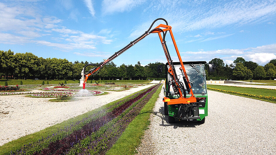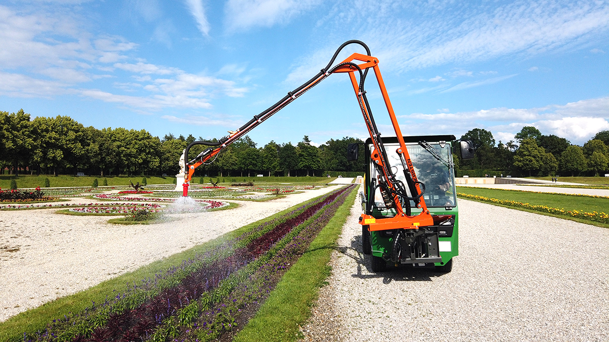 Mit den Gießarmen HTG 4000 und FS 3000 bietet Kersten zwei moderne Lösungen zur mobilen Bewässerung. Beide Modelle verfügen über eine beeindruckende Armauslage von bis zu 3,5 Metern, eine enorme Sprühreichweite bis zu sieben Metern und sorgen somit für eine sehr gute Abdeckung großer Flächen. Eine Funksteuerung ermöglicht eine komfortable Bedienung vom Fahrersitz aus.