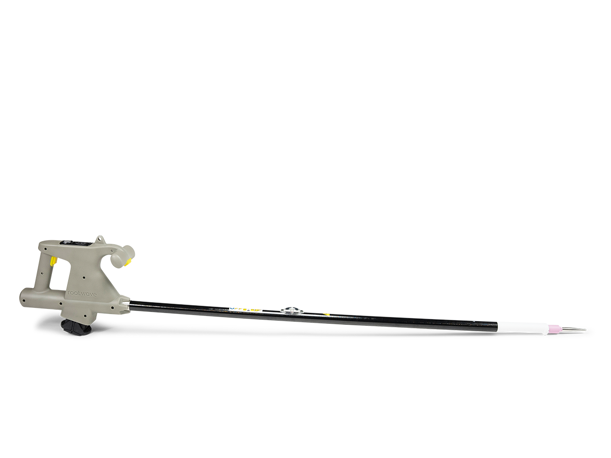 Insgesamt besteht das electro lance-Set aus einem Power-Modul, der Lanze mit Handgriff, Elektrode sowie verschiedenen Verbindungssteckern und -kabeln. Die Lanze verfügt über Sicherheitsknöpfe mit Zwei-Punkt-Bedienung: Nur wenn beide Knöpfe mit beiden Händen betätigt werden, geht sie in Betrieb.