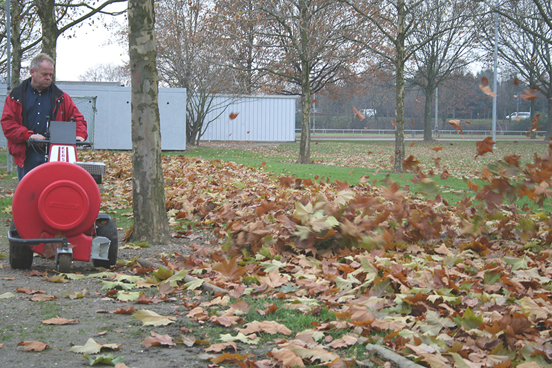 Jeden Herbst aufs Neue: Lärm schlagende Laubbläser, für Umwelt und Bediener sind sie eine extreme Belastung. Hier hat Kersten, Arealmaschinenhersteller aus Rees, nun eine Neuentwicklung vorangetrieben, die diesem Ärgernis aus dem Weg gehen soll.
