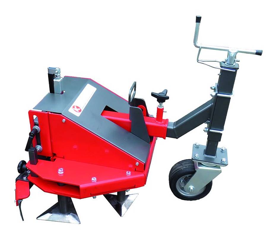Das Entfernen von Wildkraut auf unbefestigten Wegen, zum Beispiel auf Friedhöfen, Sportplätzen und in Erholungsbereichen, stellt ein immer wiederkehrendes Problem dar. Hierfür hat der Arealmaschinenhersteller Kersten aus Rees einen speziellen Wildkrautentferner entwickelt, der sehr einfach zu bedienen ist. Gesteuert durch einen Einachser schieben sich mehrere in Pyramidenform am Gerät statisch angebrachte Messer in Form von Metalldreiecken wie ein Pflug unter die befallene Fläche. Dadurch lockert sich der Untergrund, das Wildkraut wird samt Wurzel an die Oberfläche befördert und kann anschließend abgefegt oder abgeharkt werden. Die Arbeitsbreite beträgt angenehme 70 cm, bei einer Arbeitsgeschwindigkeit von etwa 4 km/h. Gedacht ist dieses Gerät für den reinen, ganzjährigen Pflege-Einsatz. Verwendet werden kann der Wildkrautentferner mit der Bezeichnung WKM mit den hauseigenen Einachsern, ist aber auch mit entsprechendem Adapter für Einachser verschiedenster Hersteller kompatibel.